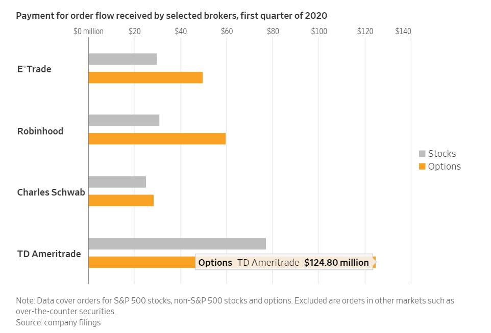 Новые отчеты, утвержденные в этом году SEC, показывают, что доходы от продажи заявок клиентов маркет-мейкерам являются более щедрыми для опционов, чем для акций. Люди, вовлеченные в бизнес, сказали, что биржи опционов платят скидки электронным торговым фирмам, которые, в свою очередь, передают их брокерам. Такие платежи являются дополнительным стимулом для брокеров, чтобы повысить активность опционов.