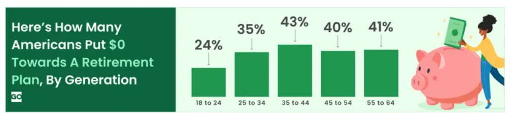 Почему же в США люди не откладывают деньги на пенсию? Опрос показывает, что у некоторых нет доступа к планам пенсионных накоплений. Хотя по данным Бюро статистики труда 69% работников частной промышленности имеют такой доступ к планам работодателей, но только 52% участвуют в них. Другие препятствия включают инфляцию, долг, а также низкую финансовую грамотность, слишком позднее начало сбережений, непоследовательность во внесении взносов и тратах на различные нужды. Многие не рассматривают сбережения на пенсию как необходимость, сообщает GoBankingRates.