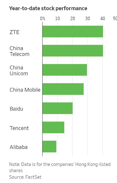 Инвесторам теперь нравятся такие акции, потому что компании соответствуют национальным целям Китая и торгуются по низкой цене. ZTE, еще один телекоммуникационный гигант, частично принадлежащий государству, в последнее время также продемонстрировал значительный рост.