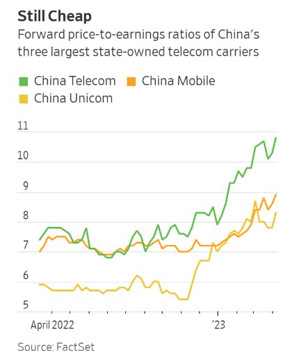 «Рынок делает ставку на то, что государственные предприятия могут повысить эффективность и извлечь выгоду из попутного ветра со стороны регуляторов», – сказал Мин Чен, глава отдела по Китаю Somerset Capital Management в Сингапуре. Он добавил, что недавний импульс помогает акциям в краткосрочной перспективе, но то, как они поведут себя в долгосрочной перспективе, будет зависеть от того, смогут ли компании улучшить свою рентабельность собственного капитала. По его словам, телекоммуникационные компании, например, должны будут расти быстрее, чем ВВП Китая. По данным FactSet, даже после недавнего роста крупные китайские телекоммуникационные компании торгуются с коэффициентом форвардной цены к прибыли от 8 до 11 раз.