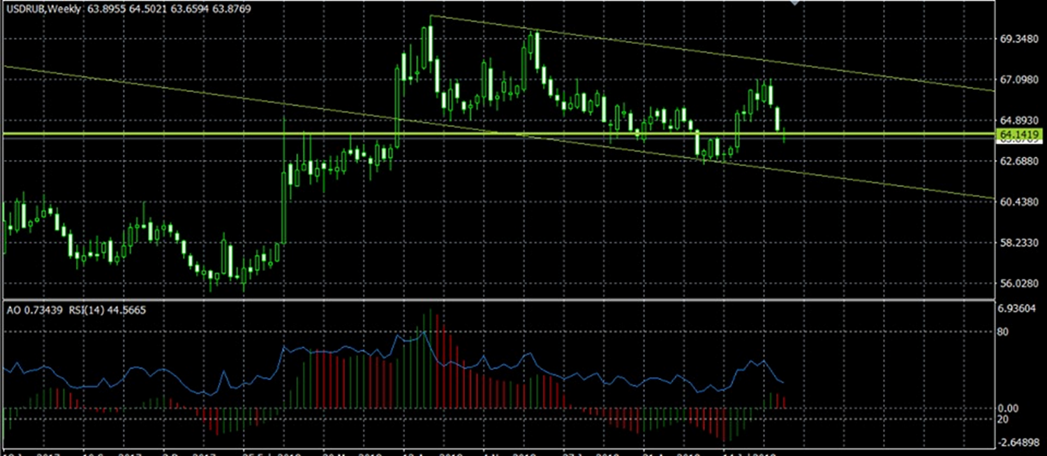 Вот как у нас теперь USD/RUB недельный выглядит. До границы канала вверх не добил. Где я надеялся его встретить. Сейчас сверху уперлись в очень напряжённую зону, характерную тем, что её не проходили с первого тычка. Ни вверх. ни вниз. Ожидаю пилы в этом месте.