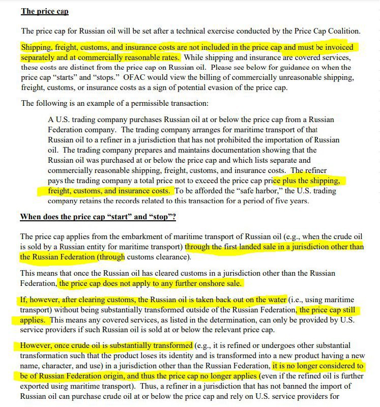 OFAC опубликовала свое Руководство по ограничению цен на морские поставки российской нефти. Похожие документы есть от Лондона и ЕС в целом согласовано.