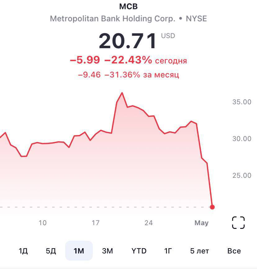 - Metropolitan (MCB US) -22,43% (-31,4% за месяц)