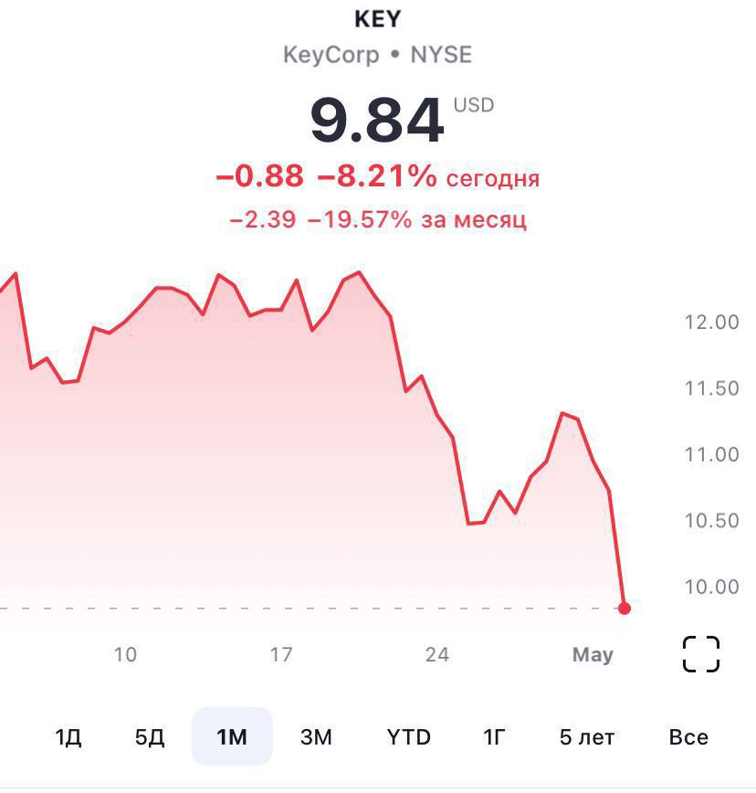 - KeyCorp (KEY US) -8,21% (-19,6% за месяц)