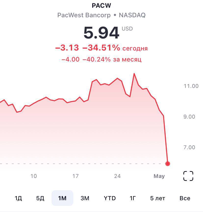 - PacWest Bancorp (PACW US) – 34,5% (за месяц -40,2%)