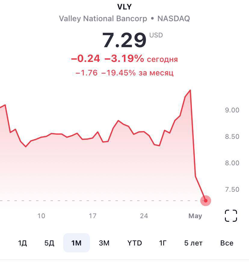 - Valley National Bank -3,2% (-19,5% за месяц)
