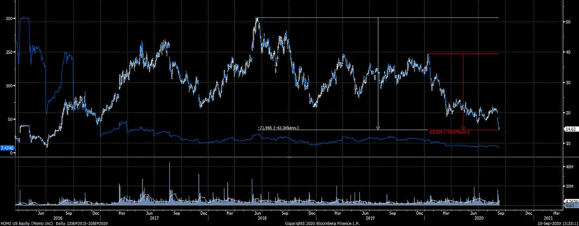 Это MOMO - китайский Тиндер. Как бумага с таким тикером падает в текущем рынке это вообще загадка;)))