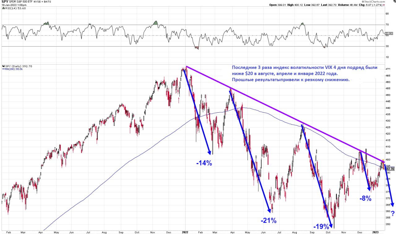 Последние 3 раза индекс волатильности VIX 4 дня подряд был $20 в августе, апреле и январе 2022.