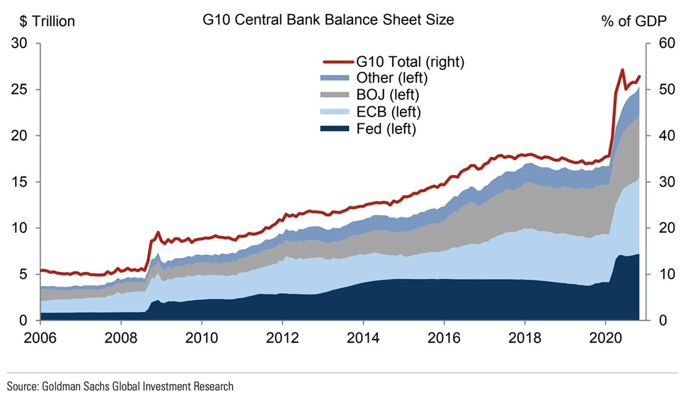 «Прекрасного» вам в ленточки. По итогам 2020 года объеденные балансы центробанков стран G10 превысили 50% ВВП этих стран вместе взятых. Если убрать из расчетов «мифического зверька» ВВП, то по факту центробанки, так называемого «развитого мира», финансируя правительства и скупая на свои балансы различные активы (даже откровенный «мусор») – являются основными держателями долга. Я это называю – «глобальное искажение», когда никакие «экономические индикаторы» не работают, а «глобальный рынок»™ больше не отражает базовых основ экономики и её фундаментальных принципов. Хотя процесс «перераспределения благ» в этом «искривлённом пространстве» не нарушен и даже ускорился – богатые становятся богаче, бедные беднее. Мистика™.