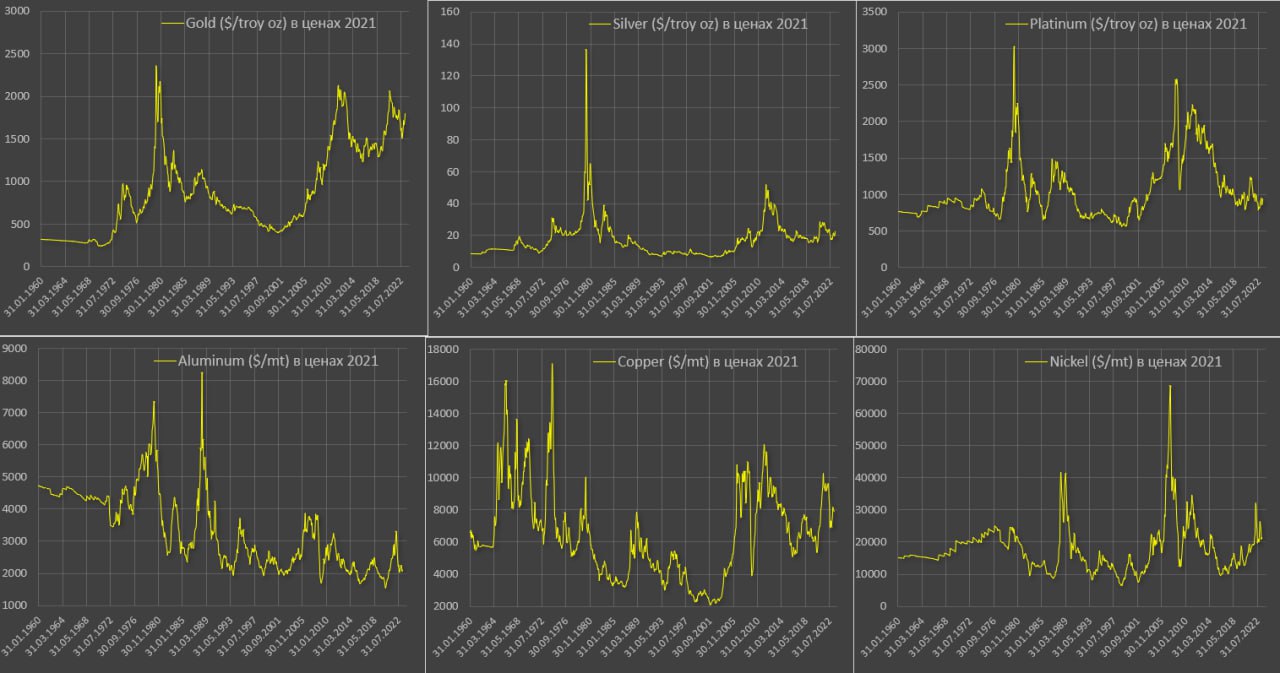 Плюс-минус в нулях находится никель, медь и платина, незначительный рост на 11% по серебру – и это за 50 лет!