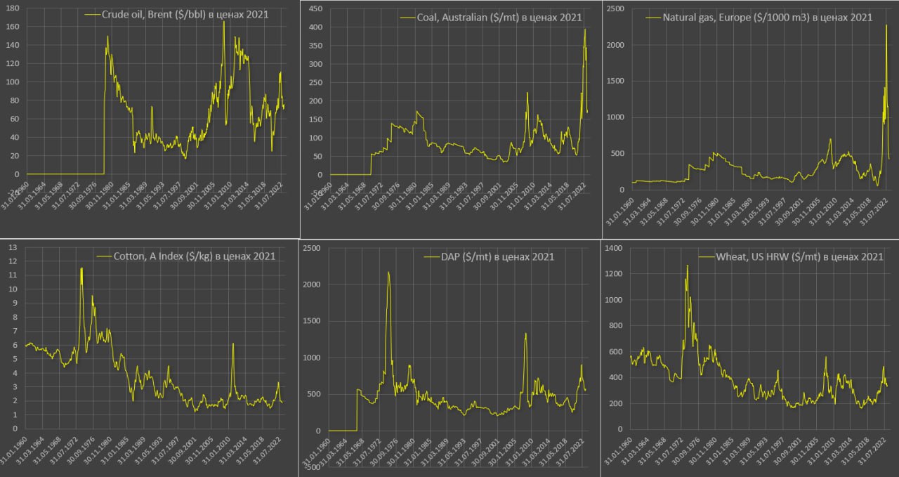Но, например, нефть сейчас находится на уровне 20-летней давности в реальном выражении. Газ и уголь еще высоки, но это эхо аномалий энергетического кризиса 2021-2022.