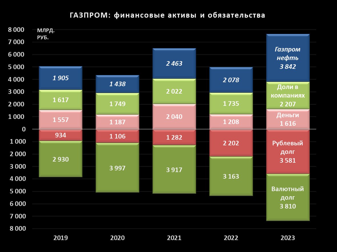 В 2023 не платит дивиденды и увеличивает долг ещё на 1,4 трлн (в т.ч. 0,4 трлн бессрочных облигаций ушли в прирост денег). Валютный долг не погашается и растет из-за ослабления рубля.
