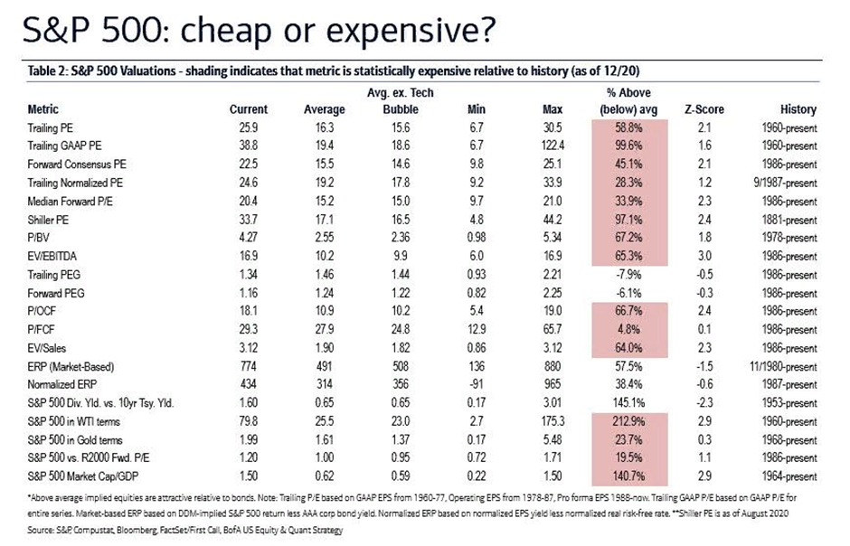 Переоценка настолько велика, что, согласно 20 оценочным метрикам BofA, рынок сейчас переоценен в соответствии с 18 из 20 (и «очень переоценен» в соответствии с 15 из 20):