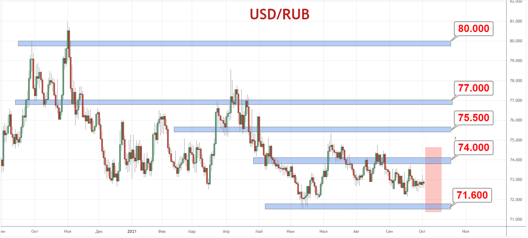 Пара USD/RUB продолжает торговаться в коридоре 72.20-74 рубля за доллар.