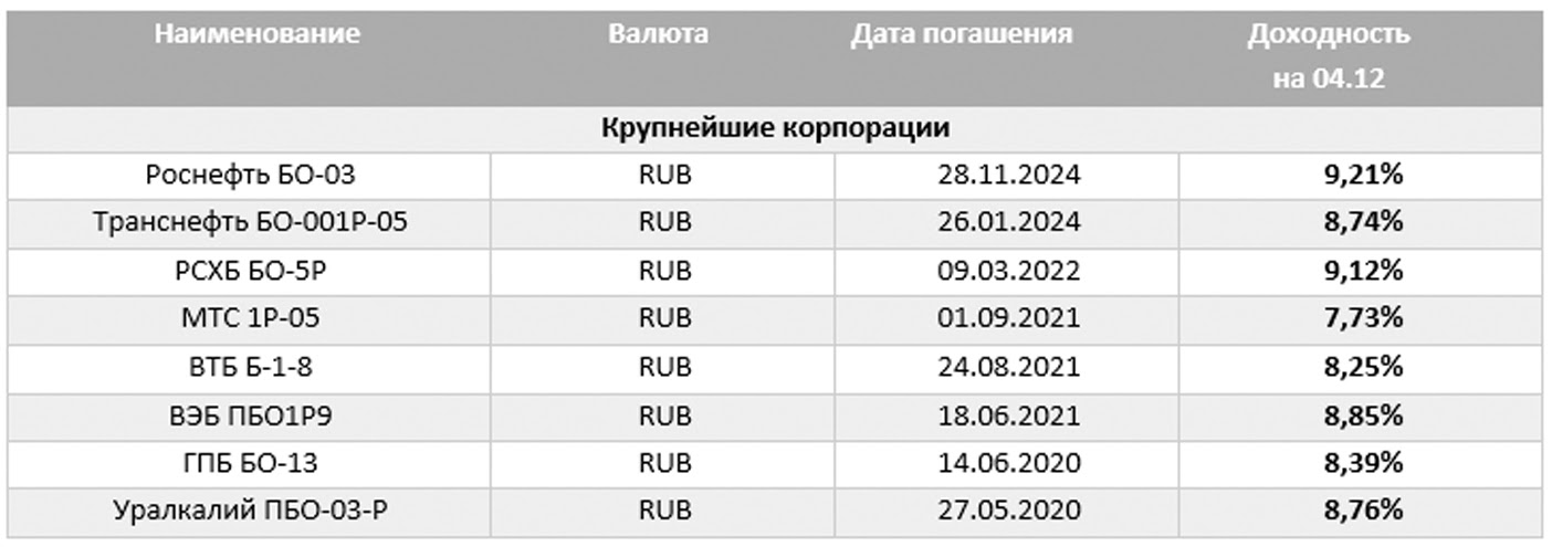 В ОФЗ заманчивая картина. Доходности почти не отличимы от субфедов и крупных корпоратов. Учитывая максимальное кредитное качество этого класса, держать в них деньги – представляется нам очевидным делом. И опять же, предпочтение отдаем длинным бумагам. Да, они волатильны. Но, полагаем, Банк России в следующем году вернется к смягчению монетарной политики, устремит ключевую ставку к 6-7%, а это для 1–летней бумаги +5, а то и +10% к нынешней цене.