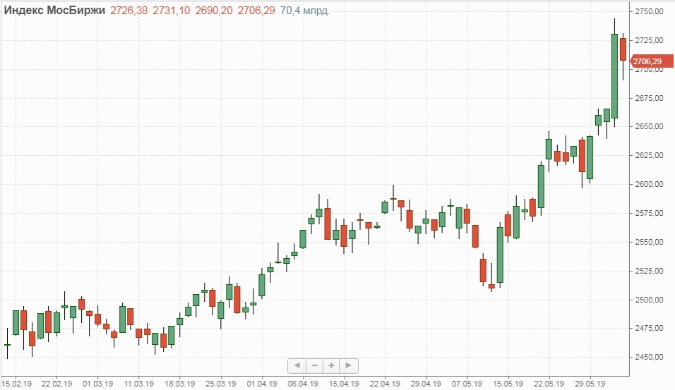 Сегодняшний день стал днем коррекции. Они там, справа и слева от нас, корректировались после падения, мы же, ставившие два дня подряд исторические рекорды, предпочли немного остепениться. И это верно – лучше вовремя вернуться на полшага назад, нащупав твердую площадку или трещину, куда можно вбить крюк и поставить страховочное кольцо, чем бездумно лезть вверх и потом сверзиться оттуда, гремя карабинами, зафиксировав на смартфоны друзей сильно удивленное лицо. Впрочем, геополитическая обстановка пока не дает никаких шансов на то, что в скором времени рынки перейдут к заметному росту. Отдельные выбросы и попытки локального роста возможны, но поводов, чтобы закрепиться на новых вершинах точно нет. По оценкам аналитиков Morgan Stanley, то ли спавших так долго, то ли ждавших мнения иных экспертов, торговые разногласия между Китаем и США могут привести к рецессии в мировой экономике. По мнению специалистов Morgan Stanley последствия торговых разногласий между Пекином и Вашингтоном на данный момент весьма неопределенны, при этом в случае введения со стороны США 25%-х пошлин на дополнительные группы товаров из Китая, мировая экономика может оказаться в состоянии рецессии уже через три квартала. Оптимисты. Я вижу начало спада через 2,5 квартала. Тем более, что никто не отменял ответных ходов со стороны Поднебесной, о которых в Morgan Stanley, видимо, не предполагают. И вот тогда уже бяка будет куда больше размером.