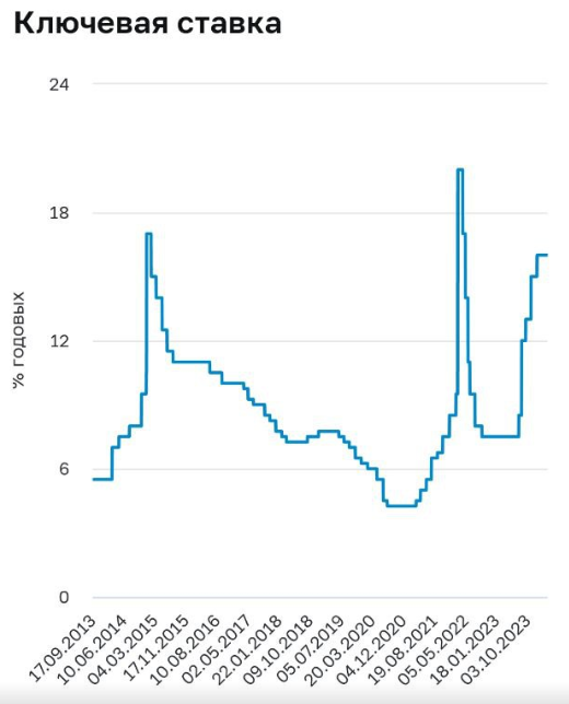 Ключевая ставка Банка России на март 2024 года. По данным Банка России.