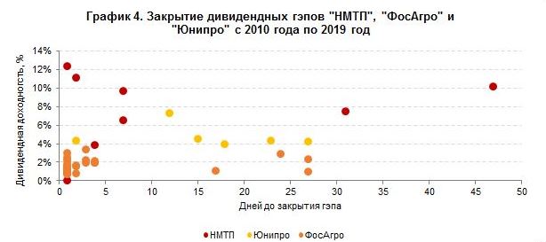 Из 56 компаний, которые выплачивали дивиденды летом, 23 корпорации закрыли дивидендный гэп в первые 10 торговых дней после отсечки, а их средняя дивидендная доходность составила 4,3%. В конце сентября-начале октября состоялся мини-дивидендный сезон, в ходе которого ряд компаний выплатили промежуточные дивиденды за II квартал и 6 месяцев 2019 года.