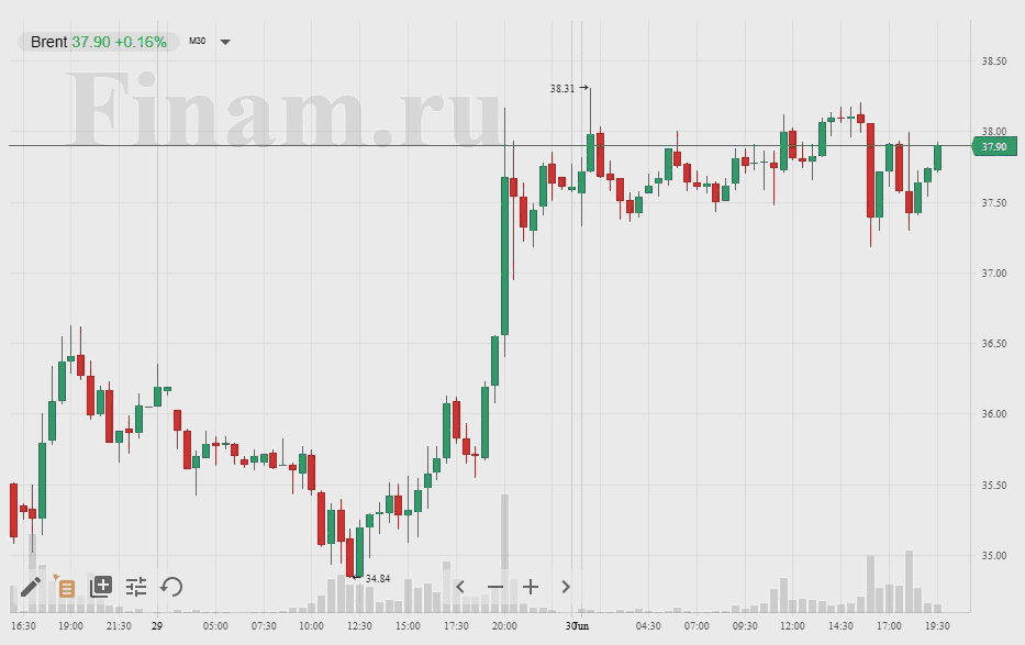 Впрочем, есть реальные риски, что откажется Россия, настаивая на том, чтобы с начала июля, как и было оговорено ранее, ограничения на добычу были смягчены до 8,7 МБД. Формальные основания у нас для этого есть. И, несмотря на то, что «нефтебыкам» праздновать победу еще рано, на сырьевые рынки вернулся оптимизм. Уже вечером пятницы котировки взлетели до 38 долл./барр. по сорту BRENT и до 35,5 по сорту WTI. С тех пор они фактически и держатся на достигнутых уровнях, а периодические коррекции носят пока неглубокий и, вероятнее всего, технический характер.