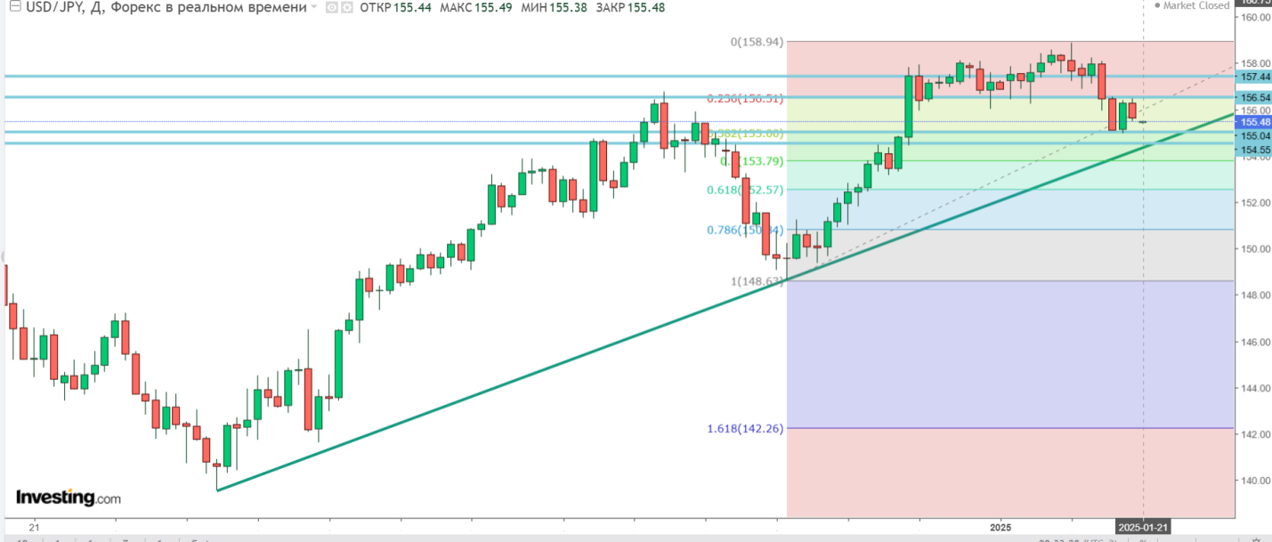 Так что вероятность этого вполне высока. Данные ожидания наряду с иными драйверами уже укрепили йену к уровням в районе 155, разрядили напряжение. Это во многом помогло снижению USDX.