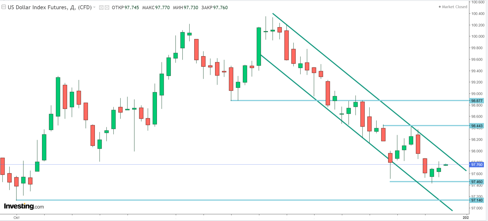 И затем – стадия окончательного Принятия судьбы, безысходности, холода. Это наступление зимы тоже отражено в Finversia. Опасность безработицы, близость отставки Пауэлла, два снижения ставок ФРС до 3,75%, завершение их срезания другими центробанками – вот фон печальных для доллара последних недель года. Уход от 100 п. к 97,4 п.