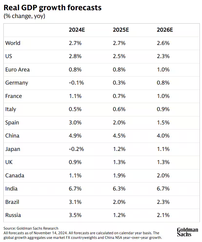 Исследовательский центр Goldman Sachs прогнозирует еще один уверенный год глобального экономического роста в 2025 году.