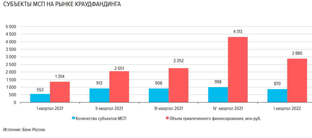 По данным ЦБ РФ, по итогам 2021 года, рынок краудинвестинга в РФ составил 4,74 млрд рублей.