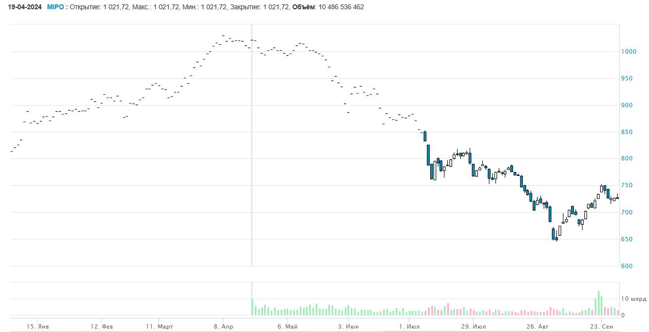 Вслед за рынком показывает своё падение и индекс «новичков биржи» – MIPO, но здесь снижение еще больше среднерыночного: за 3-й квартал индекс IPO потерял 17,6%, а от максимальных значений 2024 года – 29%. В это же время индекс ММВБ просел в 3-м квартале на 10%, а от максимального уровня в 2024 году – на 19%.