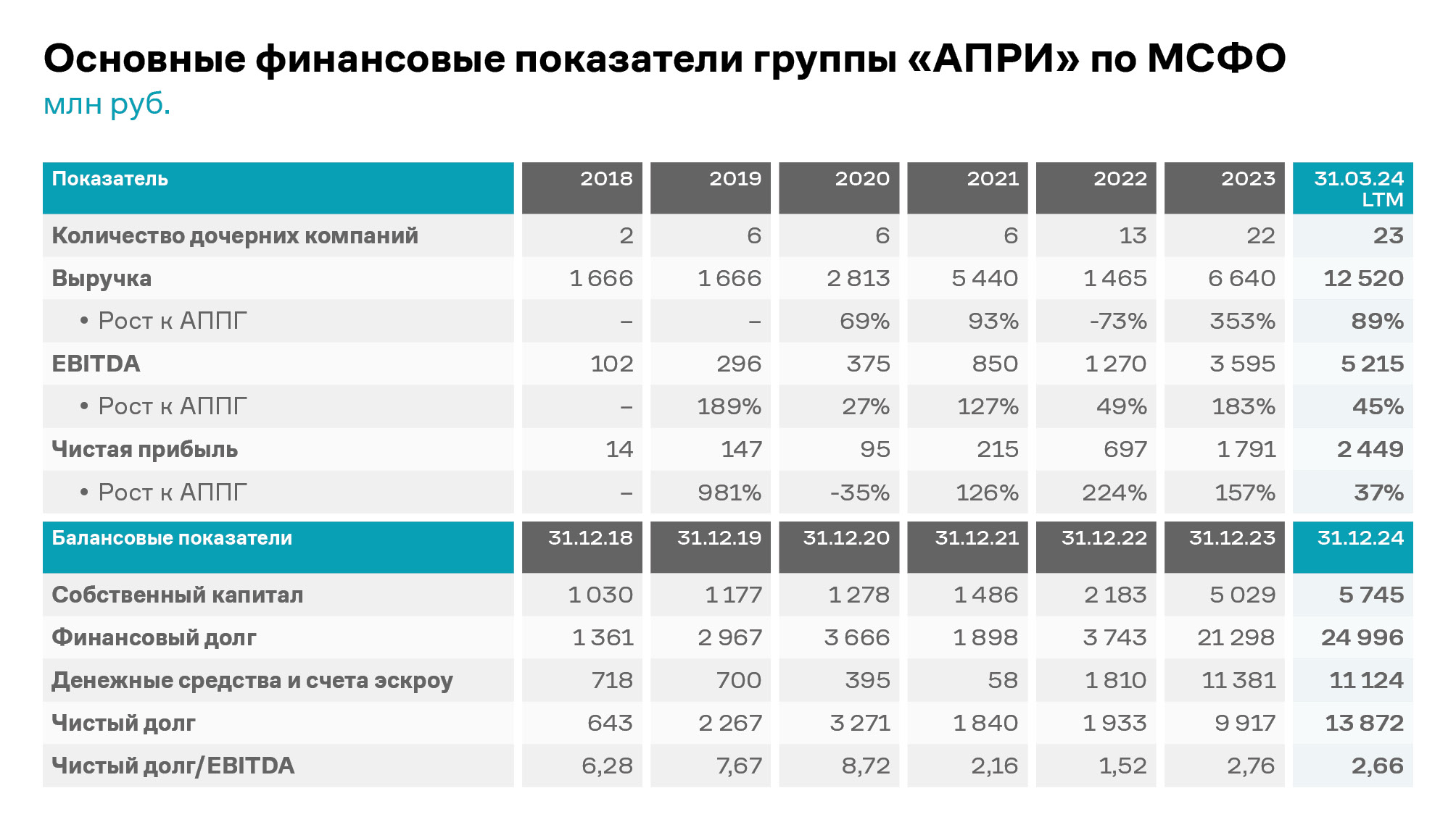 ПАО «АПРИ» является основным юрлицом группы компаний (23 «дочки») и техническим заказчиком девелоперских проектов. Группа была основана в 2014 году и специализируется на проектах строительства жилья в рамках комплексного освоения территории. С 2022 года эмитент расширил свою географию, запустив проекты в Екатеринбурге, на острове Русский Приморского края и в Краснодарском крае.