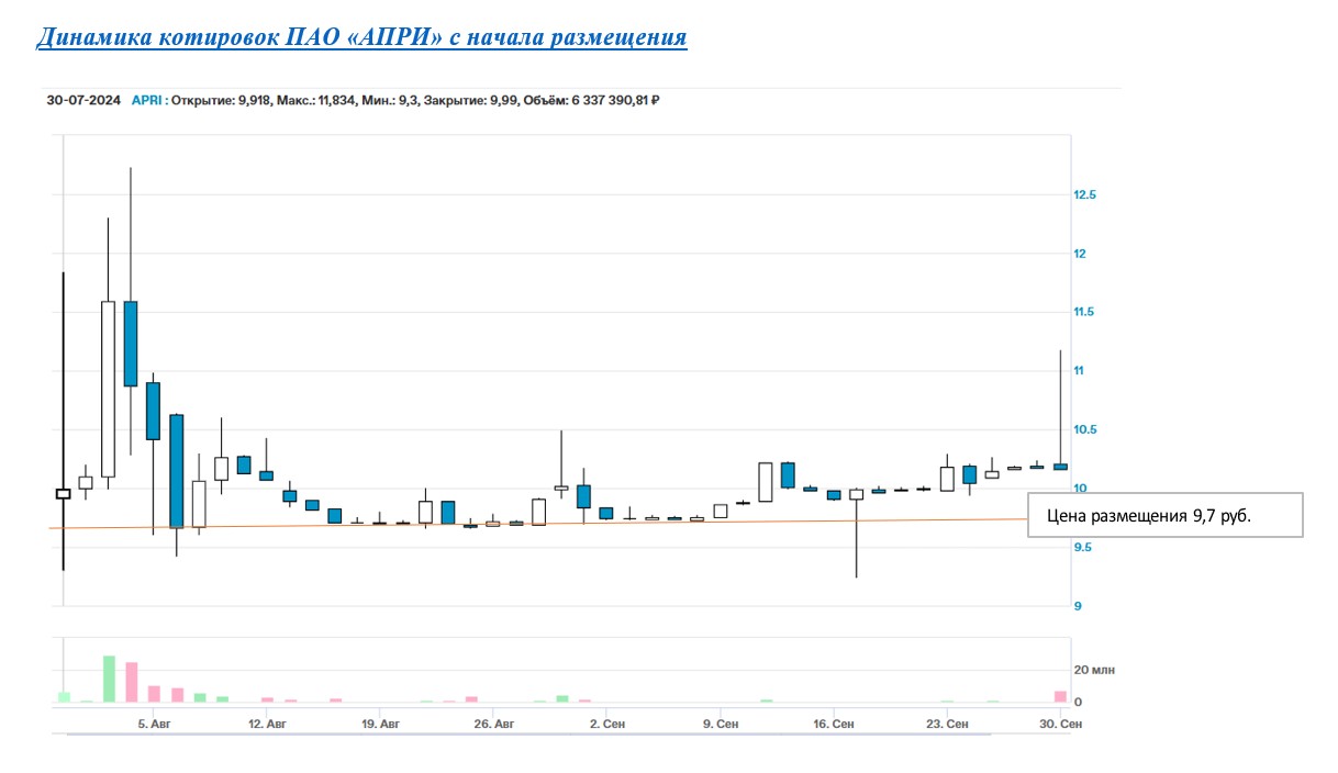 В итоге в IPO приняло участие ограниченное количество инвесторов, что позволяет компании, задействовав обозначенные механизмы стабилизации цены, поддерживать котировки на уровне не ниже цены размещения.