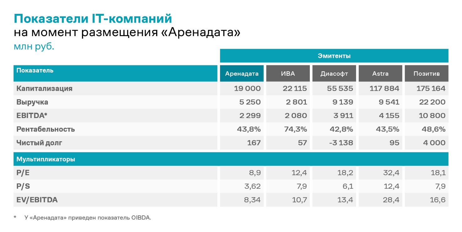 При подготовке к IPO эксперты давали предварительные оценки компании на уровне 36-40 млрд рублей, однако на размещение «Аренадата» вышла с оценкой 19 млрд руб.