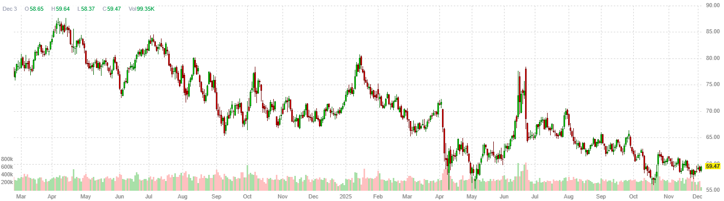 Геополитическая напряжённость поддерживает нервозность на рынке и добавляет ценам риск‑премию, частично компенсируя опасения по поводу избытка предложения. Дополнительным фактором стали заявления США в адрес Венесуэлы: американский президент Дональд Трамп допустил возможность военных ударов по наркокартелям.