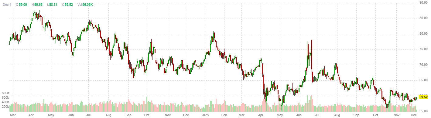 WTI выросла на 0,97% — до $59,52 за баррель.