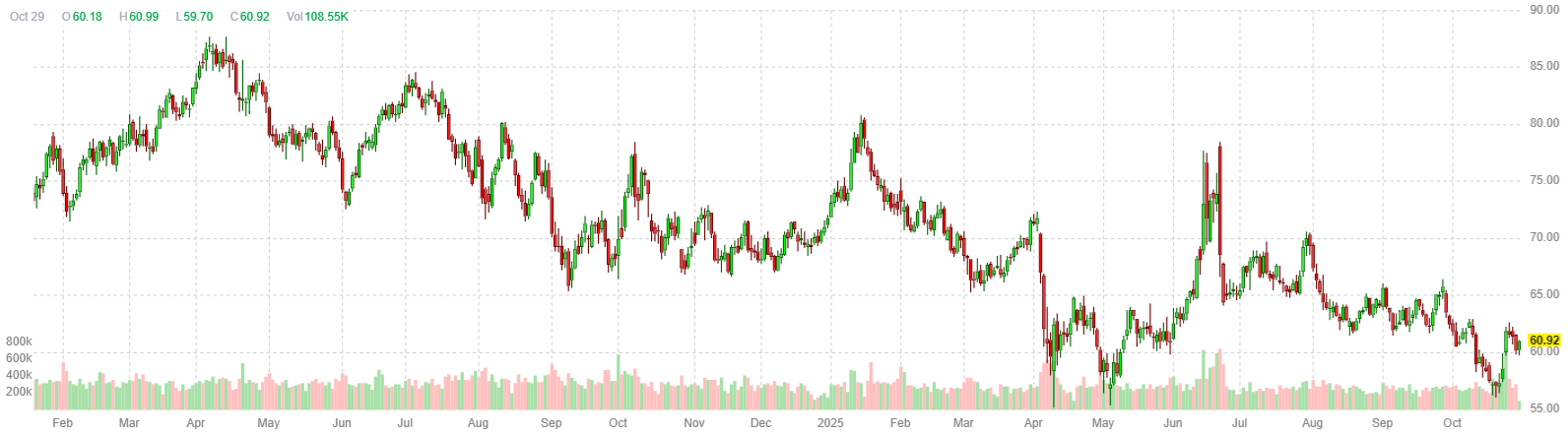 На момент подготовки материала нефть марки West Texas Intermediate (WTI) подорожала на 1,3%, торгуясь ниже $60,92 за баррель.