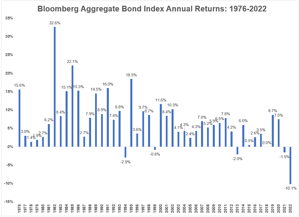 Это верно и в отношении акций, и в отношении облигаций. Последние 12 месяцев аналитики называют самыми ужасными для рынка облигаций. Наихудшей доходностью совокупного индекса облигаций Bloomberg за календарный год с момента его создания была потеря 2,9% в 1994 году. Однако, только с начала года индекс снизился на 10%.