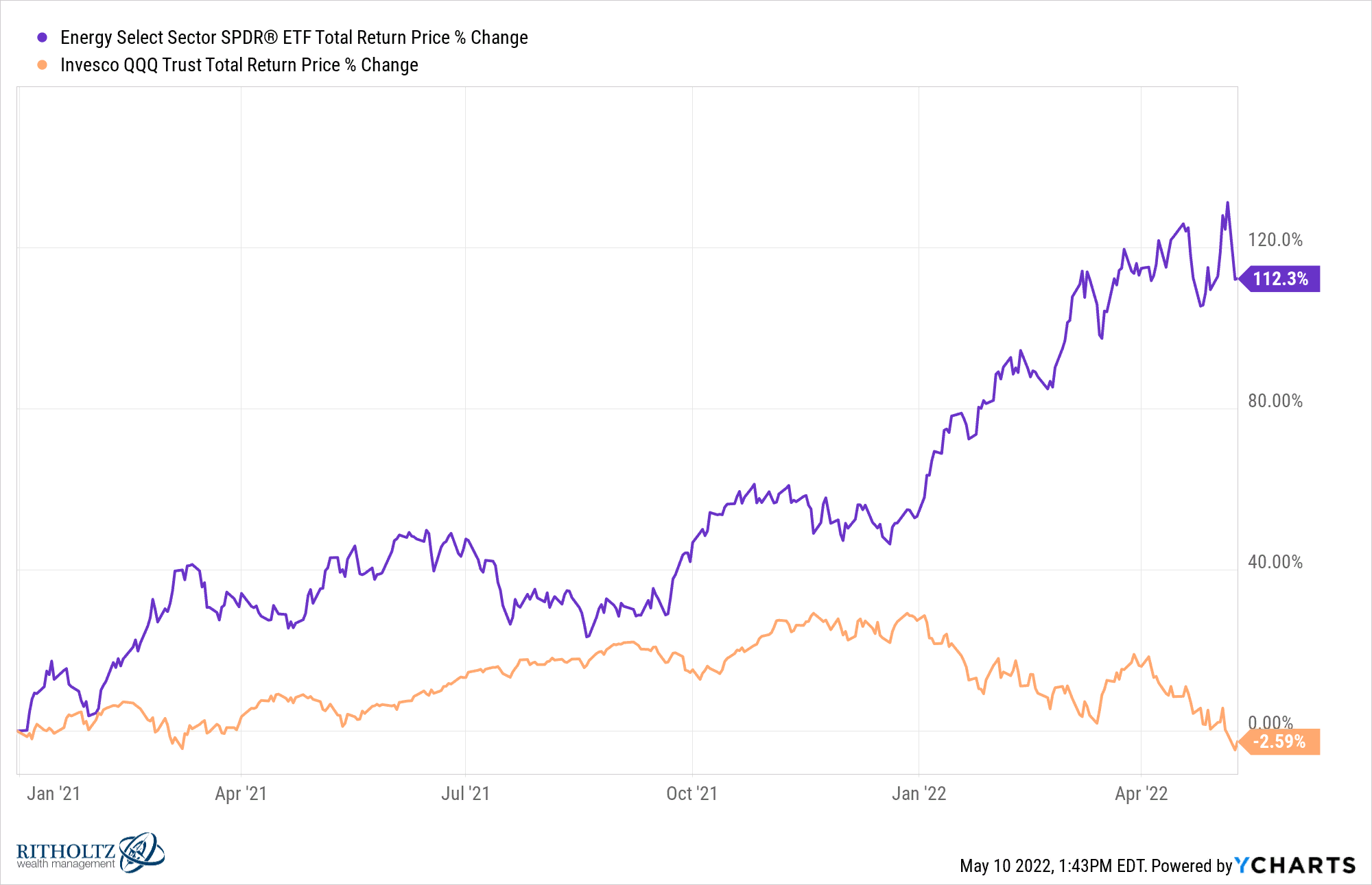 Биржевой фонд энергетического сектора Energy Select Sector SPDR Total Return вырос более. чем на 112% в то время, как биржевой фонд, который отслеживает индекс Nasdaq 100, потерял около 2,6%.