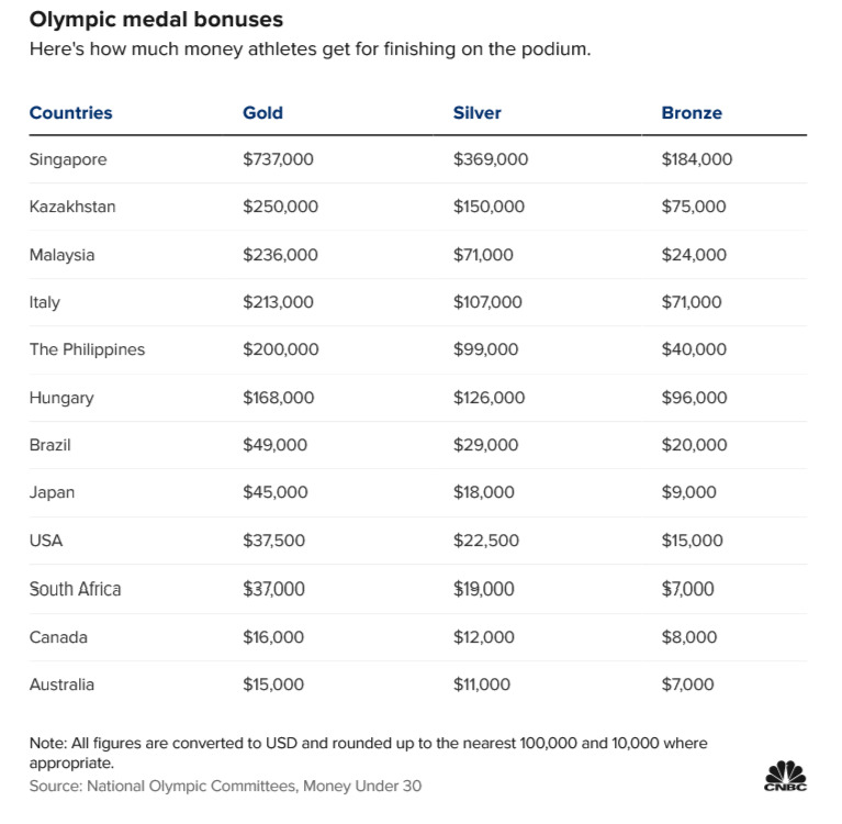 - Here’s how much Olympic athletes earn for winning medals (CNBC)