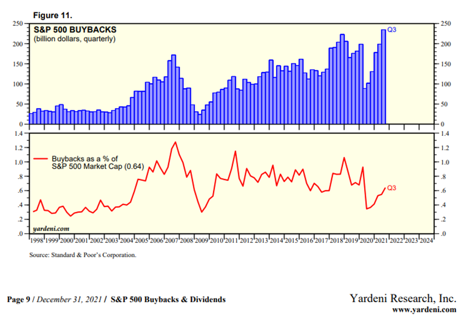 Эксперт считает, что в наступающем году корпорации продолжат выкупать свои акции. Что касается акций Apple, то рост котировок акций компании напрямую связан с программами buy back.