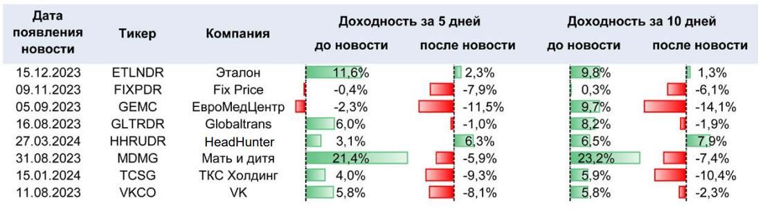 Обнародование решений о возобновлении дивидендных выплат положительно влияет на динамику котировок акций до и после появления новости: