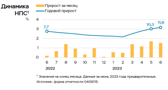 Портфель необеспеченных потребкредитов за 1-е полугодие 2023 года вырос на 7,1% и составил 12,8 трлн. рублей. После умеренных темпов роста в январе-феврале в марте месяце потребкредитование оживилось и вышло на темпы роста докризисного 2021 года. Рост потребкредитования может быть связан как с возросшей потребительской активностью, так и со смягчением требований банков к качеству заемщиков. Банк России прогнозирует, что ужесточение регуляторных требований с 1 июля 2023 года несколько охладит рынок потребкредитования.
