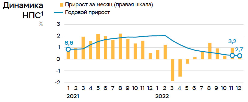Прибыль банковского сектора резко снизилась. К концу года процентные ставки приблизились к докризисному уровню. Компании активно перекредитовываются. Ипотека восстанавливается благодаря госпрограммам. Приток вкладов произошел в момент высоких ставок. Финотчетность банков останется непубличной до середины 2023 года. Хорошие перспективы имеют банки, сделавшие упор на работу с малым и средним бизнесом. Разбор проблемных кредитов банками продолжается.