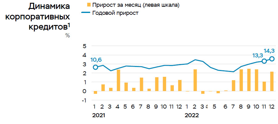 При этом идет активная девалютизация корпоративного кредитного портфеля за счет замещения валютных кредитов. Всего за 2022 год кредиты в валюте сократились на 18% или на $30 млрд.