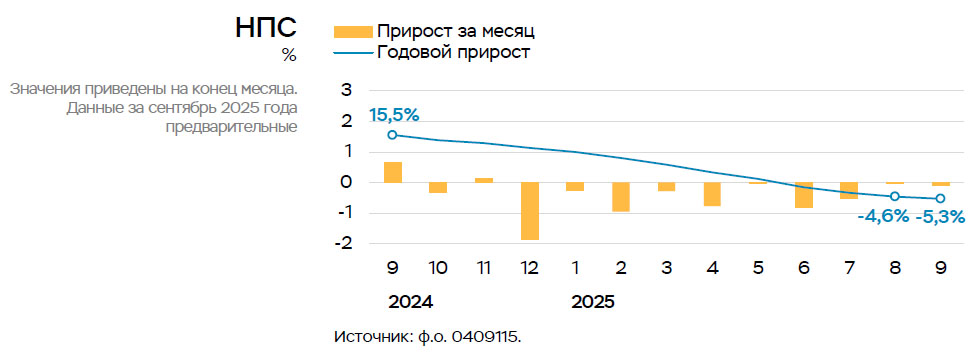 Портфель необеспеченных потребкредитов за 9 месяцев 2025 года снизился на 3,8% и составил 13,3 трлн. рублей. Замедлению потребкредитования способствовали ужесточение ограничений Банка России в части выдачи ссуд заемщикам с высокой долговой нагрузкой и рост процентных ставок по кредитам. Рост наблюдался только в сегменте кредитных карт. Банк России с удовлетворением констатировал охлаждение рынка потребкредитования.