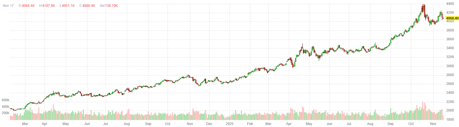 Тем не менее, с начала года золото подорожало примерно на 55% и сохраняет шансы на лучший годовой результат с 1979 года. Рекордный рост выше $4 380 в прошлом месяце был поддержан активными покупками со стороны центробанков, а также интересом инвесторов к драгоценным металлам как к защите от фискальных рисков в крупнейших экономиках мира.