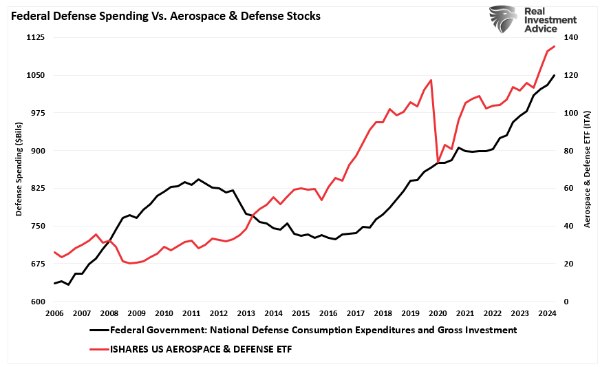 Оборонная и аэрокосмическая промышленность. Расходы на оборону – еще одна область, которая выиграет от результатов выборов Трампа. Трамп был решительным сторонником увеличения военных расходов для модернизации и укрепления национальной безопасности. Исторически такая политика приносила пользу оборонным подрядчикам, таким как Lockheed Martin и Raytheon Technologies. Эти компании, вероятно, получат дополнительные государственные контракты и финансирование военной экспансии, что делает их привлекательными инвестициями. Учитывая, что расходы на оборону увеличиваются при демократической и республиканской администрациях, такое, вероятно, повторится снова. Наконец, акции оборонных компаний также, как правило, являются защитными в условиях неопределённости на рынке и, как правило, являются очень стабильными дивидендными компаниями.