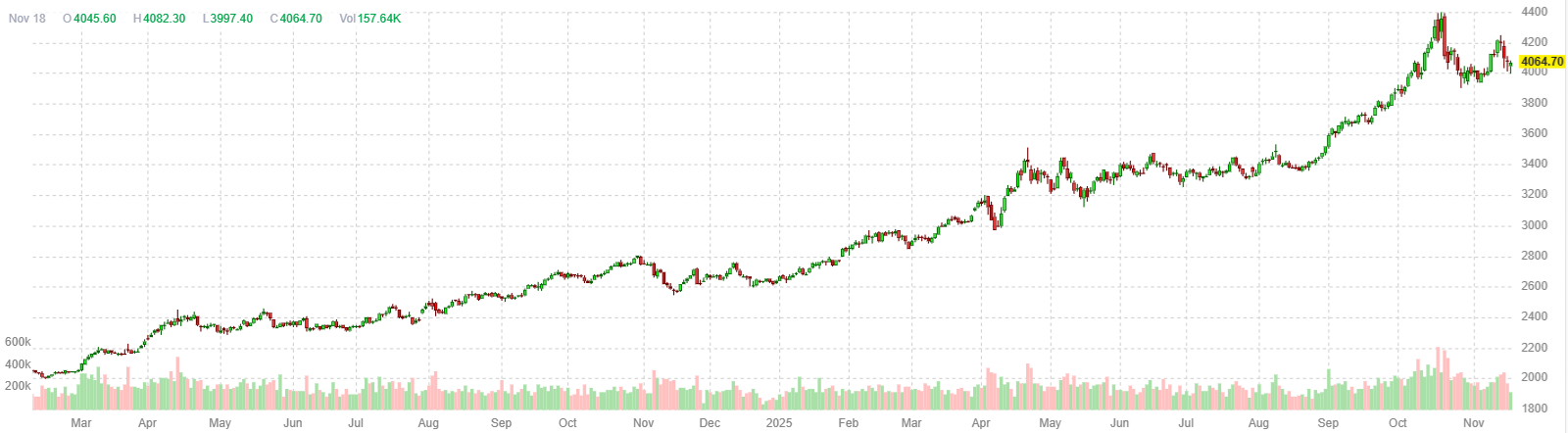 Несмотря на недавнюю коррекцию, золото подорожало более чем на 50% с начала года и удерживается на траектории лучшего годового результата с 1979 года. Инвесторы активно покупали металл как защитный актив на фоне роста фискальных рисков в крупных экономиках, а повышенный спрос со стороны центральных банков поддерживал стремительное ралли до рекордных уровней выше $4 380 в прошлом месяце.