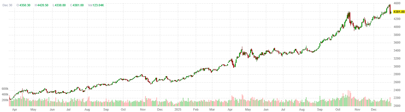С начала года золото выросло в цене на 66% — это крупнейший годовой прирост с 1979 года. Его движение поддержал целый комплекс факторов: смягчение монетарной политики, геополитическая напряжённость, активные покупки со стороны центробанков и приток средств в фонды, обеспеченные золотом (ETF).